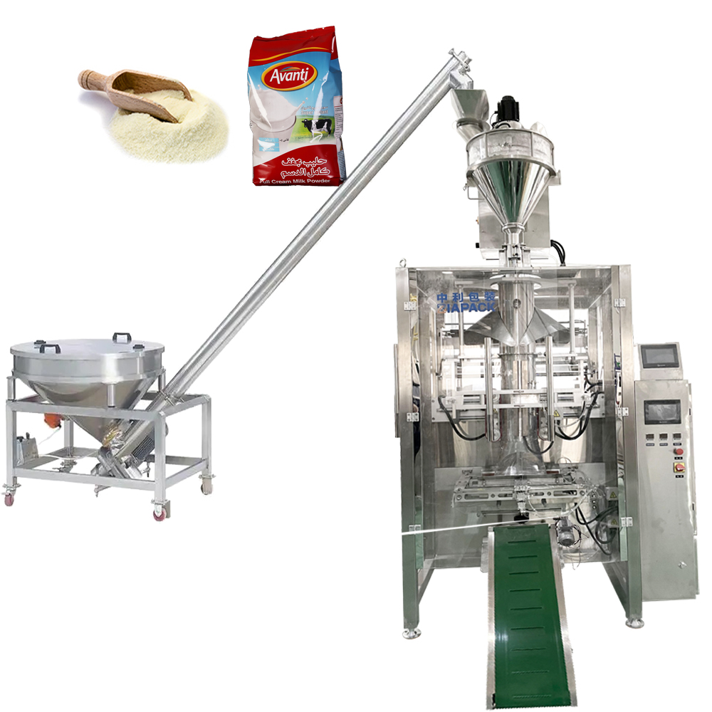 Stroj za pakiranje brašna / mlijeka u prahu / grah praha / kukuruznog škroba prikladan je za pakiranje materijala niske tjelesne tekućine, kao što je mlijeko u prahu, prašak bjelanjka, lijekovi, kondicija, čvrste napitke, dekstroza, kava, poljoprivredni pesticidi, aditivi za hranu i tako dalje. Naširoko koristi u prehrambenoj industriji, medicini ili kemijskoj industriji.