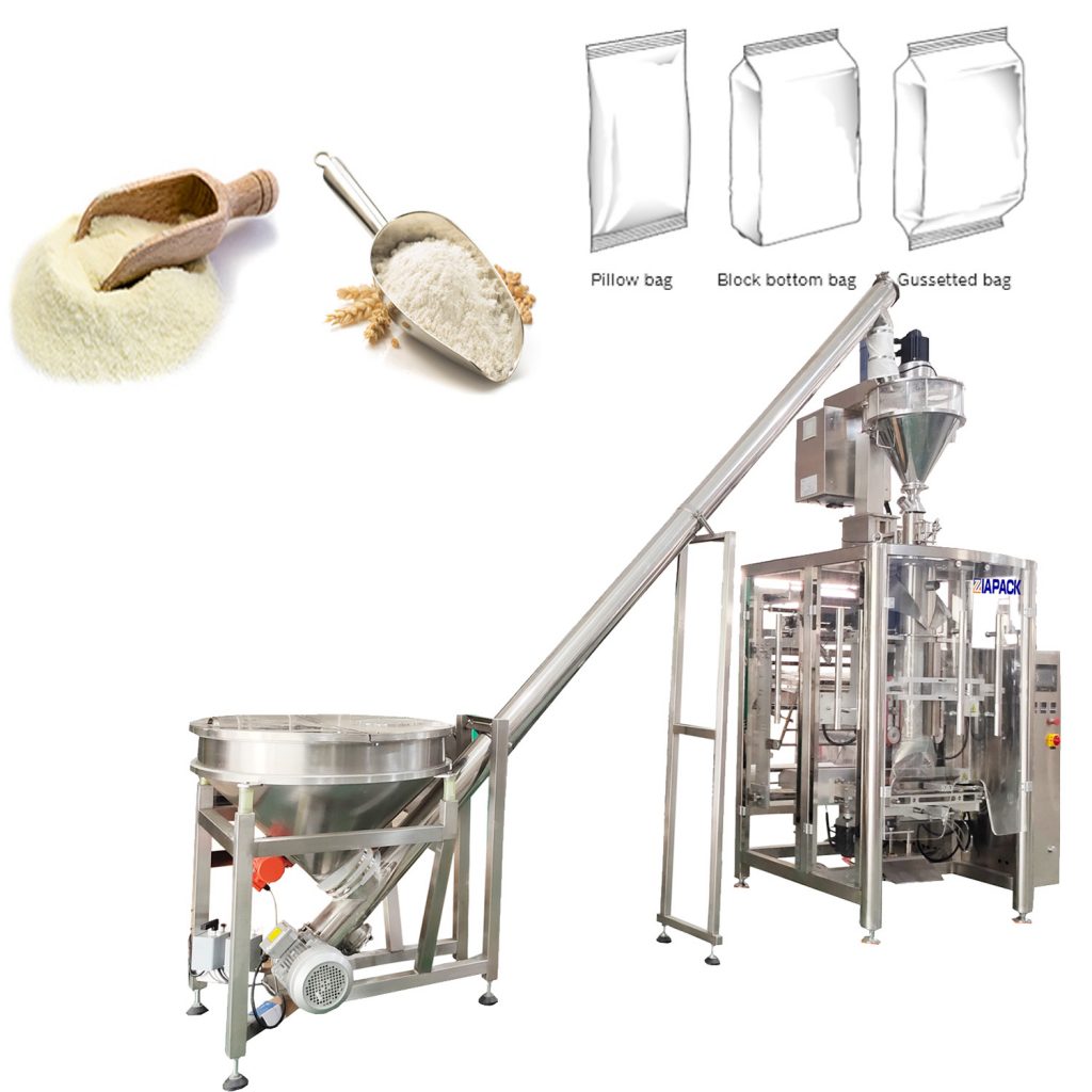 Ova jedinica stroja uključuje jedan set ZL1100 vertikalnog stroja za brtvljenje punjenja za oblikovanje vrećica i jedan set ZL2000 stroja za mjerenje pužnice. Cijela jedinica stroja može doseći automatsku izradu vrećica, vaganje proizvoda, brtvljenje punjenja proizvoda i kodiranje datuma. Široko se koristi za pakiranje pšeničnog brašna, kave prah i mlijeko u prahu i drugi proizvodi u prahu.