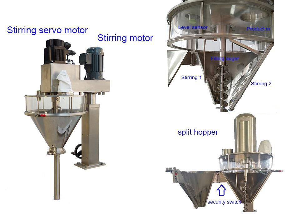 Utikač za punjenje s servo motorom, namijenjen proizvodima za doziranje praha, odijelo za širok raspon labavih praškastih proizvoda kao što su brašno, mlijeko u prahu, kakao, šećer za glazuru, dječja hrana, začini, fino usitnjena kava, kemijski proizvodi itd.