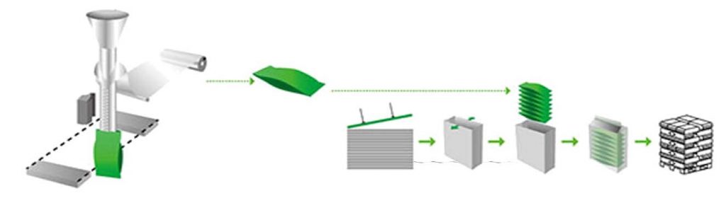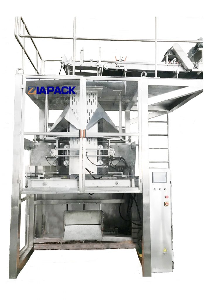 Ovaj stroj je prikladan za pakiranje male vrećice u veliku vrećicu. Stroj može automatski izraditi vrećicu i napuniti malu vrećicu, a zatim zatvoriti veliku vrećicu. Ovaj stroj uključujući jedinice za rezanje: