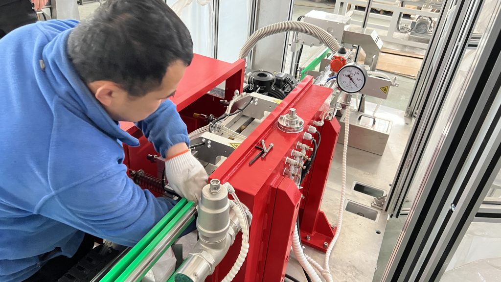 Sada je stroj spreman za isporuku. I nakon što započne video sastanak s klijentom radi pregleda stroja. Cijela je linija spremna za isporuku.