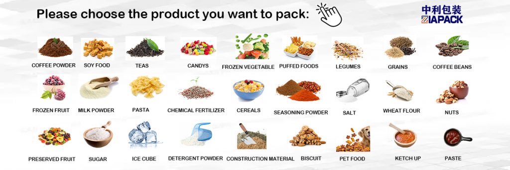 Pogodan je za granule, komade, pahuljice, kao što su zalogaje, sir, tjestenina, bomboni, hrana za kućne ljubimce, smrznuta hrana IQF ...