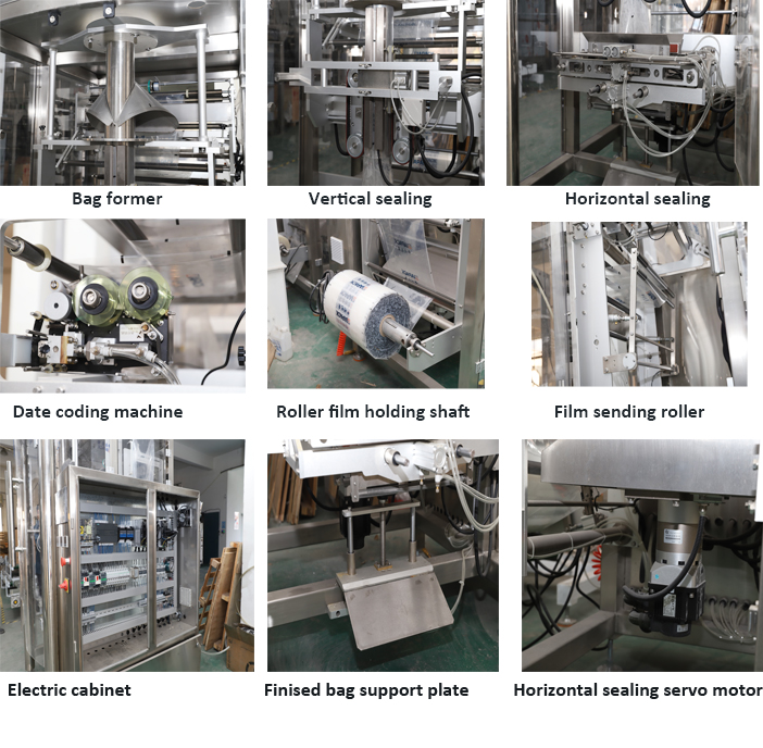 Ova jedinica stroja uključuje jedan set ZL720 vertikalnog stroja za zatvaranje punjenja za oblikovanje vrećica i jedan set ZLC-5000 stroja za vaganje s četiri kante, jedan set DT3 vertikalnog elevatora i izlaznog transportnog stroja. Cijela jedinica stroja može doseći automatsku izradu vrećica, vaganje proizvoda, punjenje proizvoda brtvljenje i kodiranje datuma. Široko se koristi za pakiranje letvice, deterdženta u prahu, riže, graha i drugih granuliranih proizvoda.